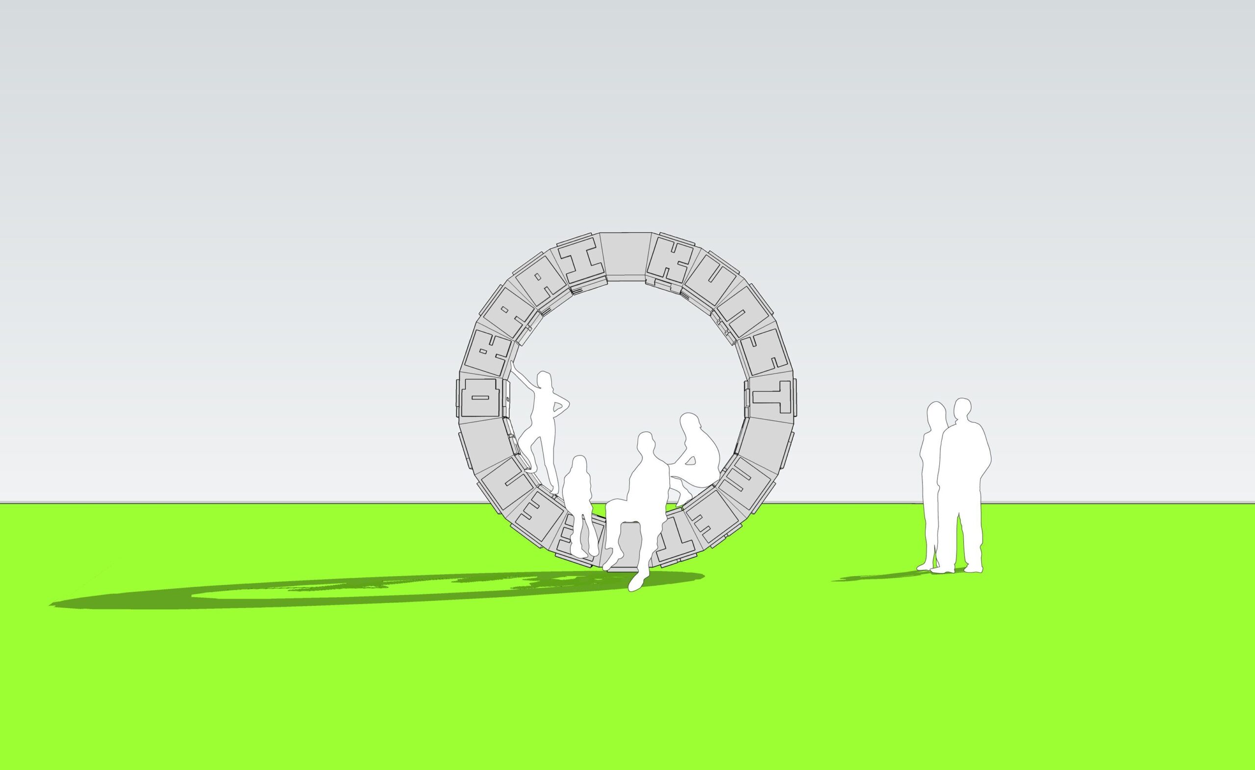 Martijn Sandberg (1967) werkt graag met de beeldtaal van de kunst en zet taal om in beeld. Voor hem vormde de naam van de wijk, De Draai, een inspirerend ingrediënt voor de figuratie, de vorm van een sculptuur en de ‘content’ van het kunstwerk. Martijns sculpturale ‘ring’ met de letters aan drie kanten ‘Kunst met een Draai’ verrast en werkt associatief met de profielen van de wielen van de landbouwmachines die hier eerder op het land reden. Het kunstwerk voor De Draai is kunst met een ‘twist’: Kunst met een Draai. Het kunstwerk kan gebruikt worden als zitobject en ontmoetingsplaats. Het ontwerp zal verder uitgewerkt worden en is in het eerste kwartaal van 2023 klaar.