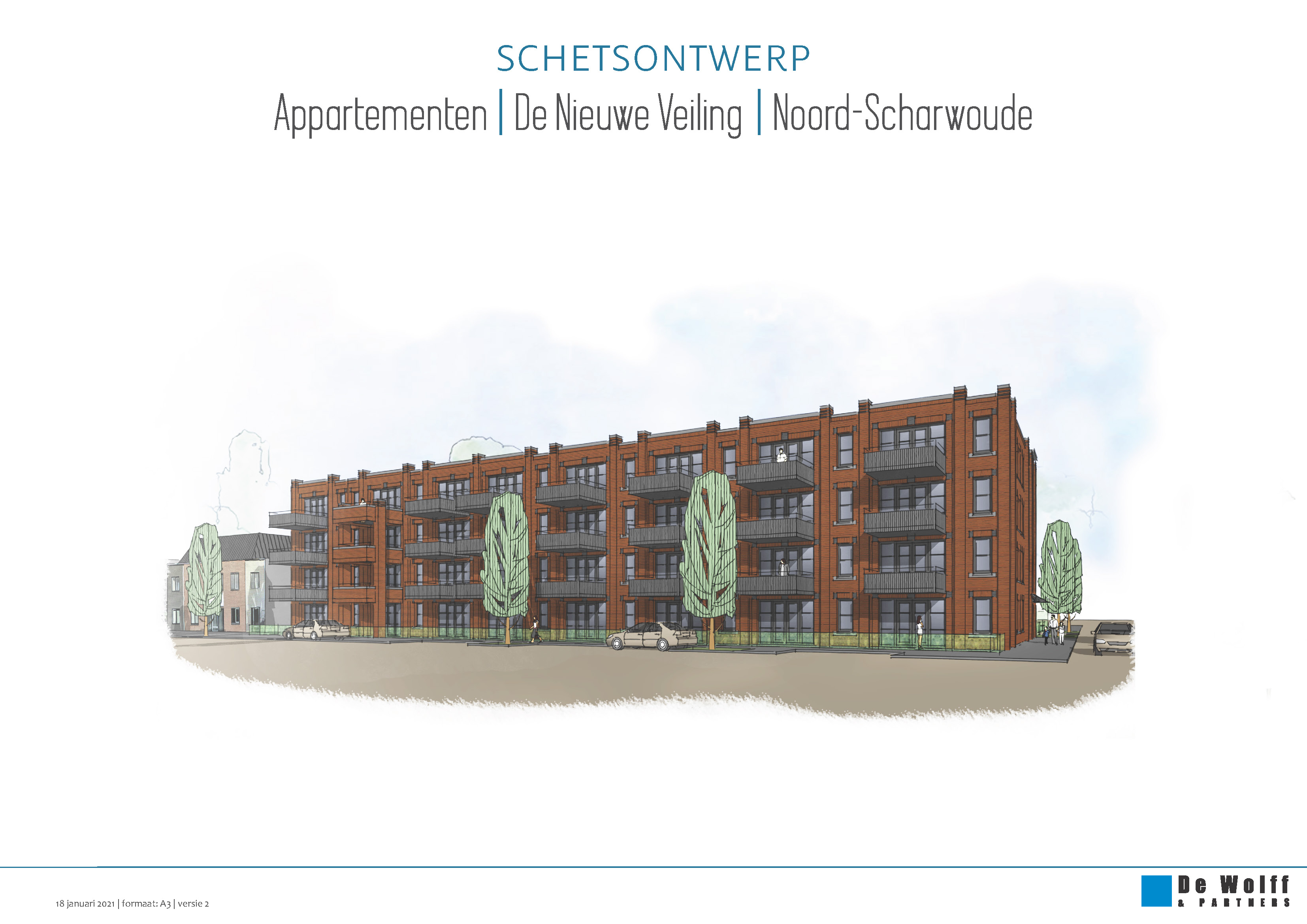 Het plan gaat uit van een appartementengebouw met 32 vrije sector huurwoningen. De architectuur van het gebouw sluit aan bij de nieuwbouw op het omliggende Veilingterrein. Parkeren vindt deels plaats in (toekomstig) openbaar gebied, achter het gebouw. Het aantal parkeerplaatsen voldoet aan de gemeentelijke normen.