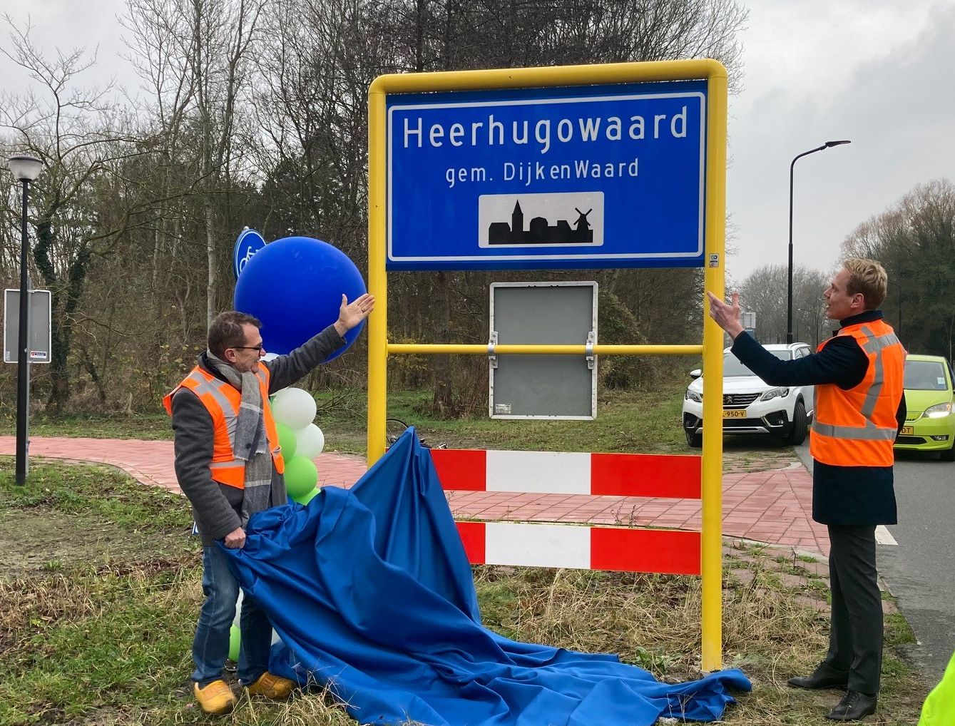 De nieuwe gemeente Dijk en Waard, per 1 januari 2022 een feit, wordt steeds meer zichtbaar. Vandaag werd het eerste nieuwe bebouwde kombord met de nieuwe gemeentenaam onthuld door wethouders Nils Langedijk en John Does.