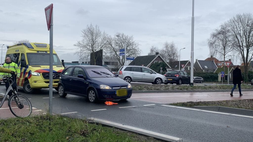 De vrouw op een elektrischefiets heeft vergeten voorrang te verlenen aan een aankomende automobiliste hierbij werd ze aangereden en is hard gevallen . Volgens een agent had de vrouw een ernstige breuk en is overgebracht naar het ziekenhuis.